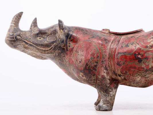 An exquisite bronze-inlaid silver rhinoceros ornament