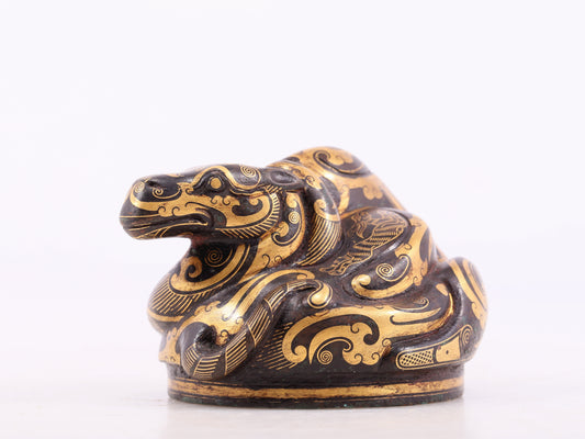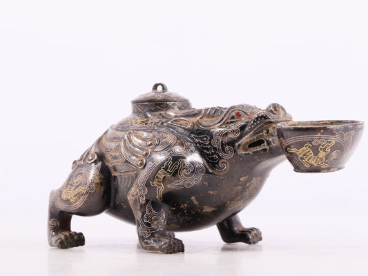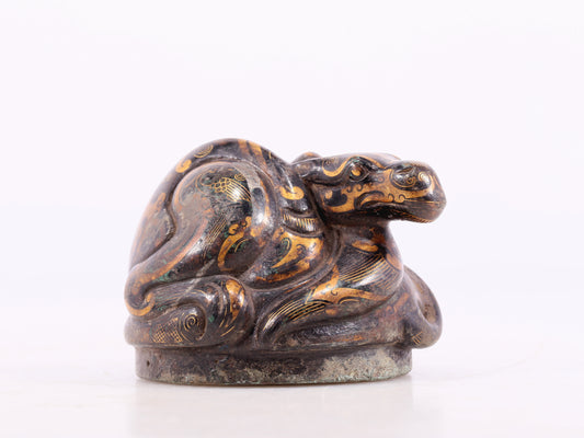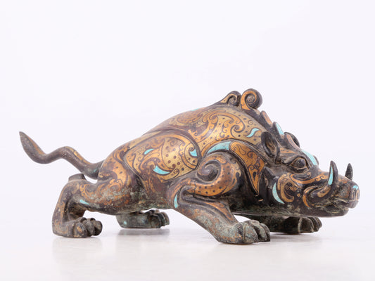 An exquisite bronze-inlaid auspicious animal ornament