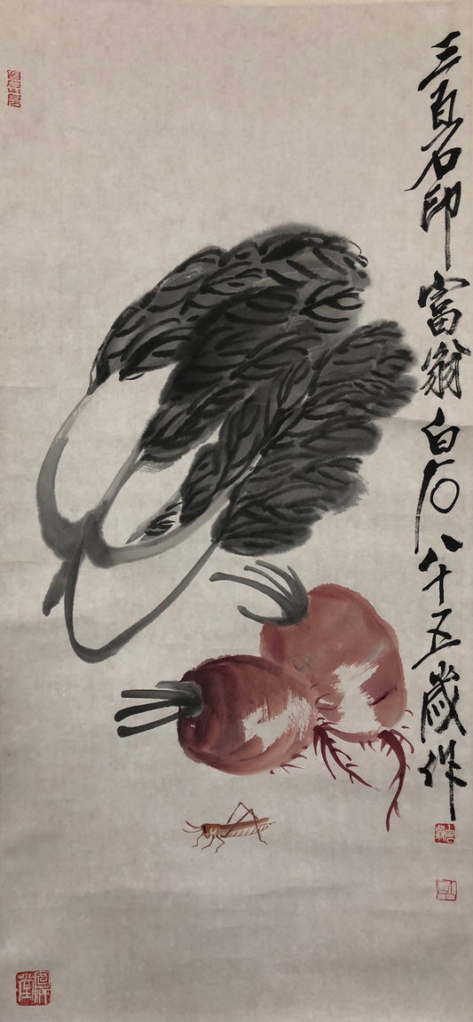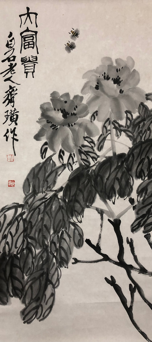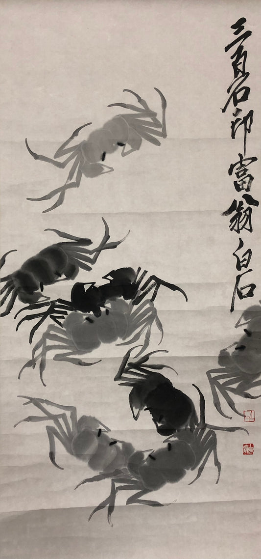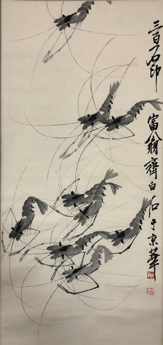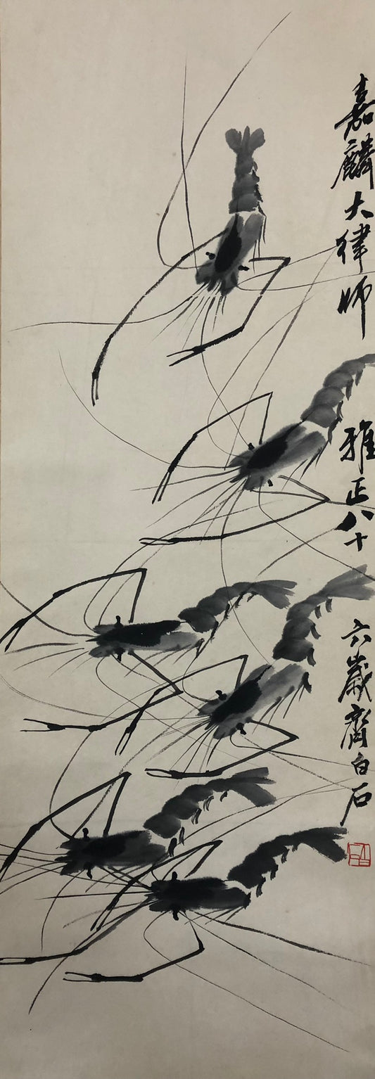 An Exquisite Chinese Ink Painting Hanging Scroll By Qi Baishi