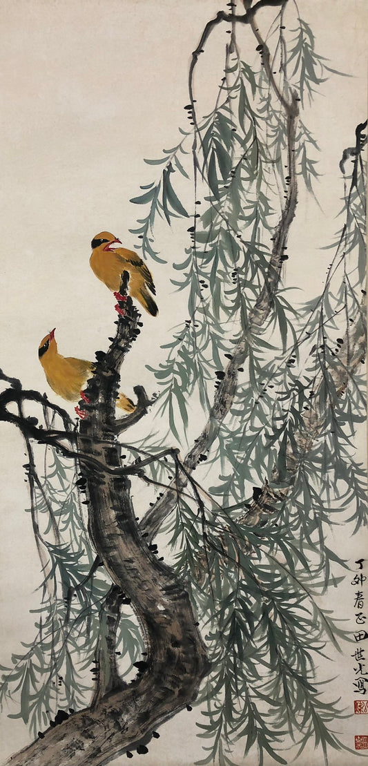 An Exquisite Chinese Ink Painting Hanging Scroll By Tian Shiguang