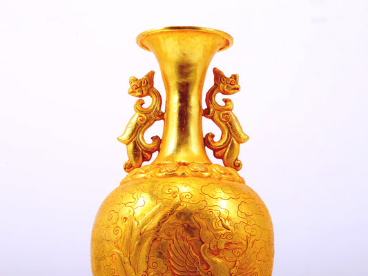 An exquisite gilt bronze amphorae with auspicious clouds and phoenix patterns