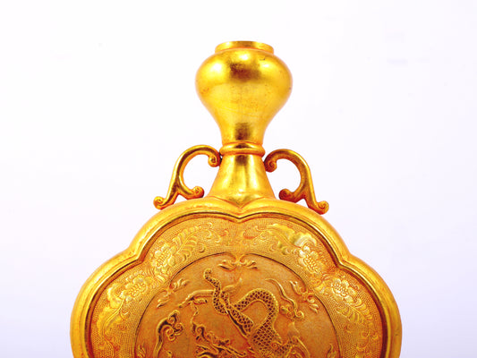 An exquisite gilt bronze amphorae with lotus and dragon patterns wrapped around branches