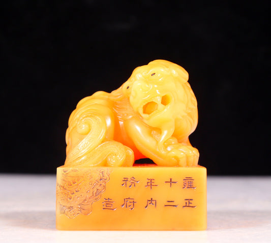 An exquisite field yellow stone unicorn seal