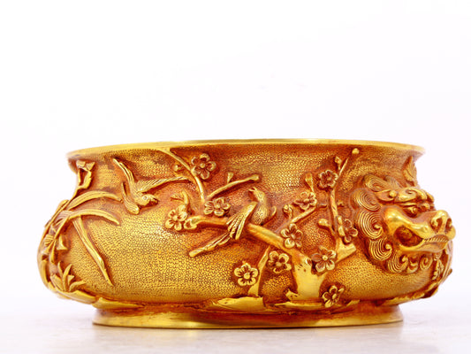 An exquisite gilt bronze animal ear censer with floral patterns