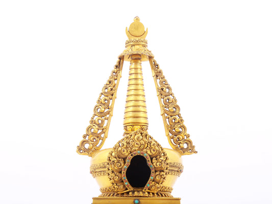 An exquisite gilt bronze and silver Buddhist altar with inlaid gems