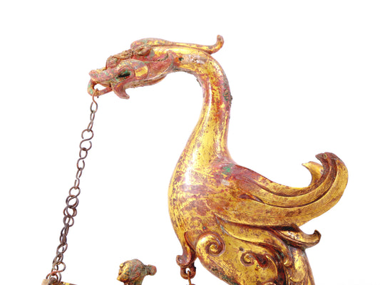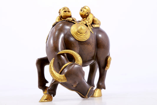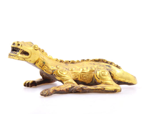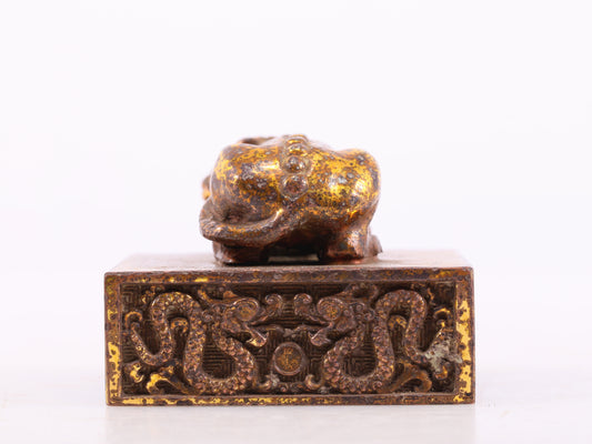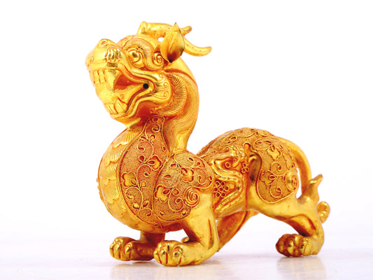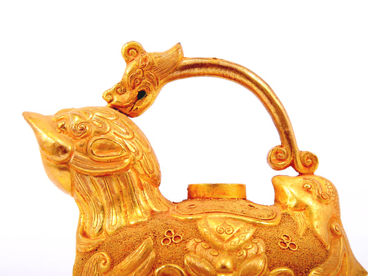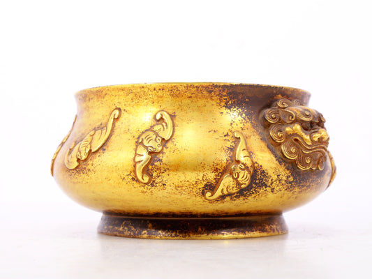 An exquisite gilt bronze bat-patterned lion-ear censer