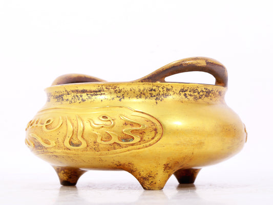 An exquisite gilt bronze Arabic censer with double ears and three legs
