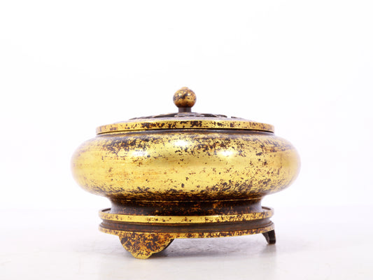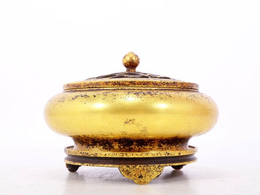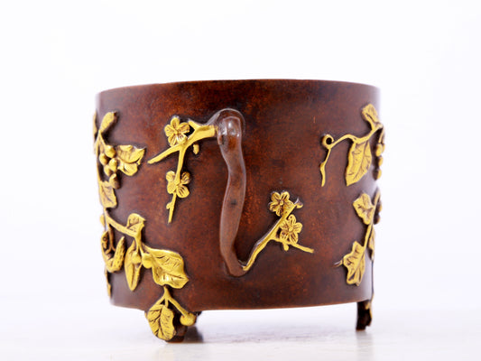 An exquisite gilt bronze censer with two ears and three legs with floral patterns