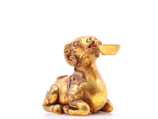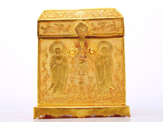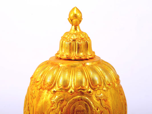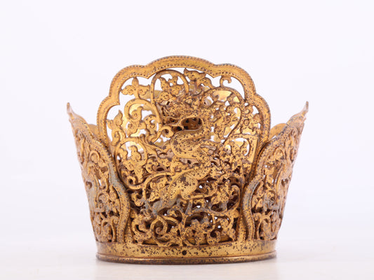 An exquisite gilt bronze hat with lotus and dragon patterns.