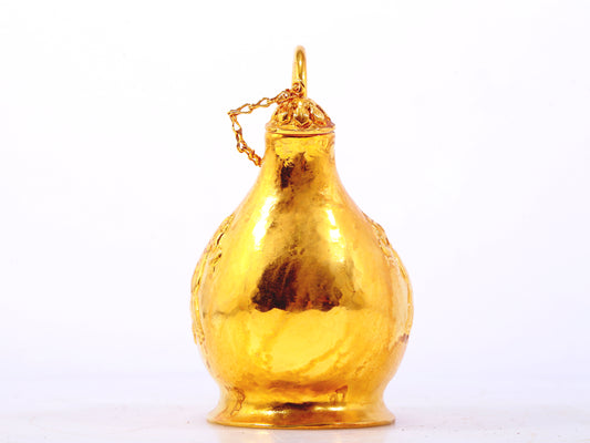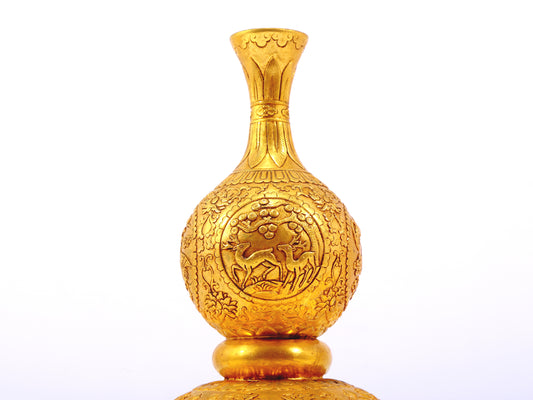 An exquisite gilt bronze gourd vase with lotus and dragon patterns.
