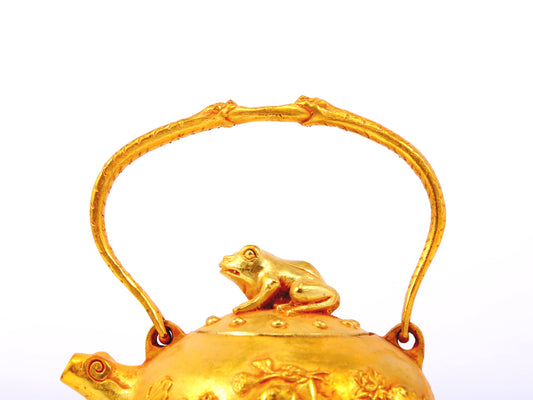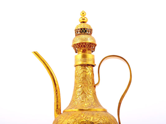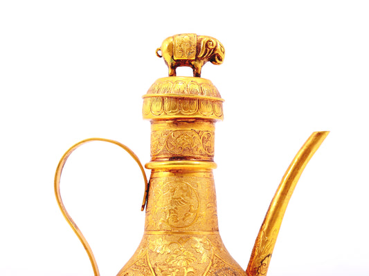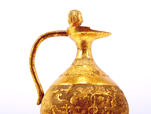 An exquisite gilt bronze ewer with lotus and phoenix patterns wrapped around branches