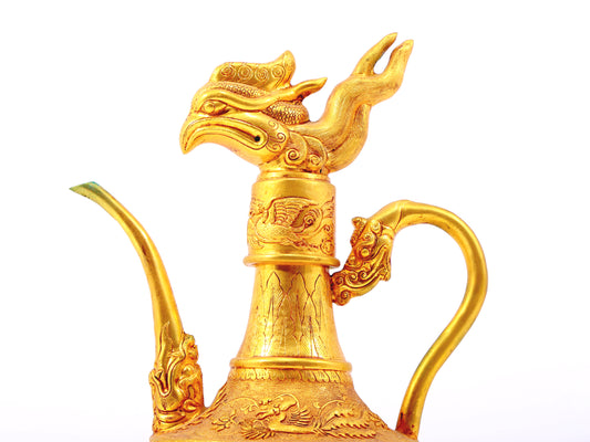 An exquisite gilt bronze ewer with dragon and phoenix patterns