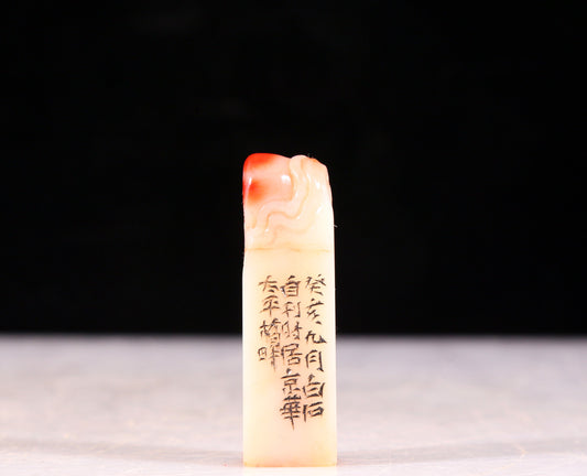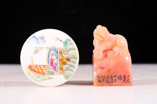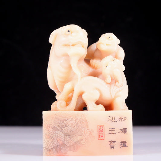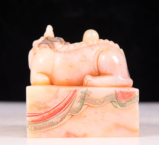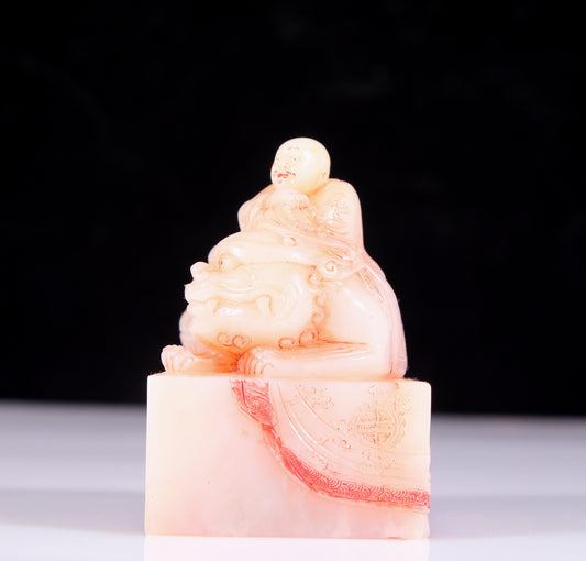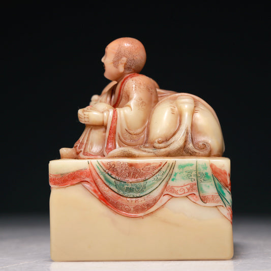 An Exquisite Soapstone Painted 'Arhat Seated On A Beast' Seal