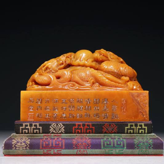 An Exquisite Tianhuang Stone 'Dragon' Seal With Poem Inscriptions