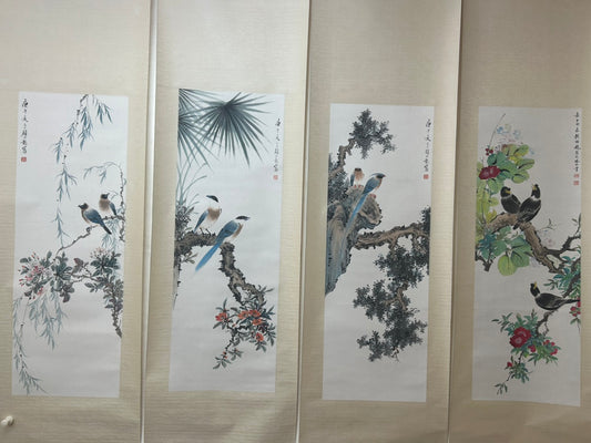 Four Gorgeous Chinese Ink Painting Hanging Scrolls By Yan Bolong