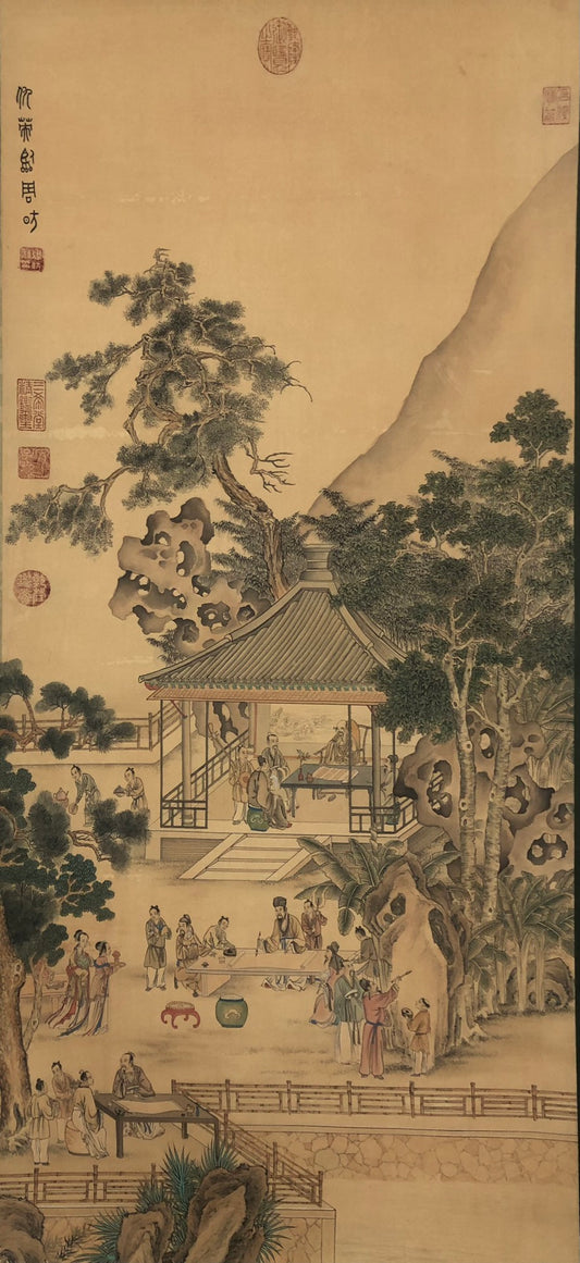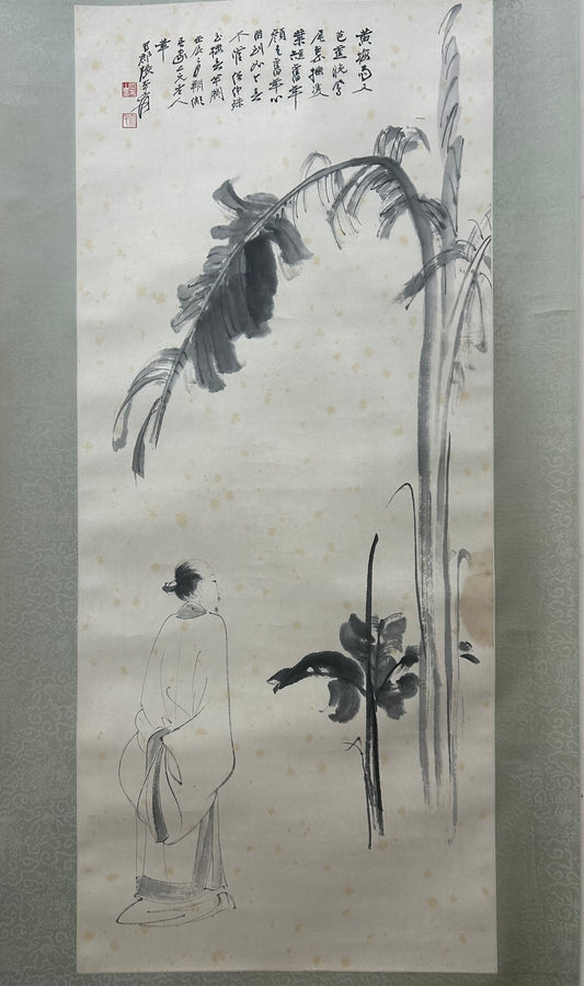 A Gorgeous Chinese Ink Painting Hanging Scroll By Zhou Fang