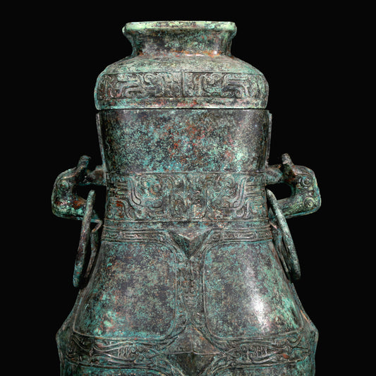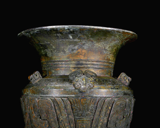 A Huge Superb Bronze 'Animal Mask' Vase