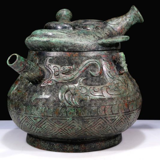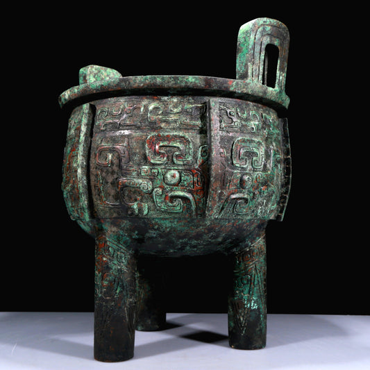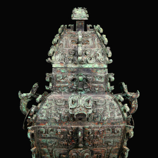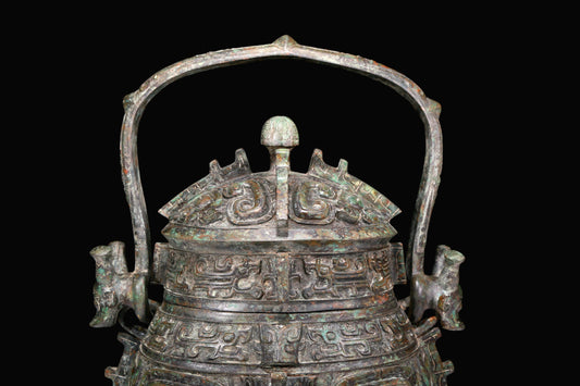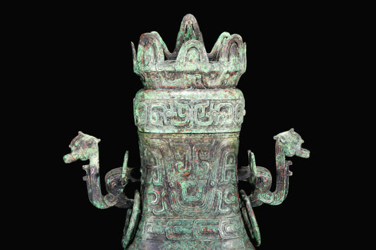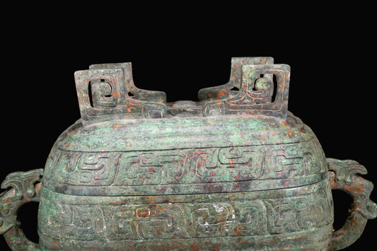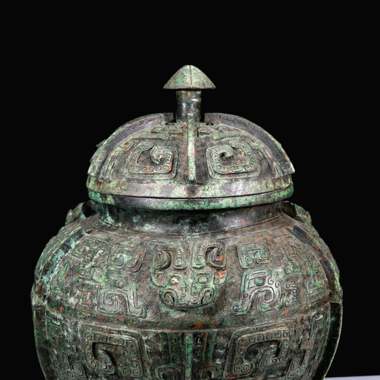 A Huge Archaic Bronze 'Animal Mask' Vase And Cover With Inscriptions