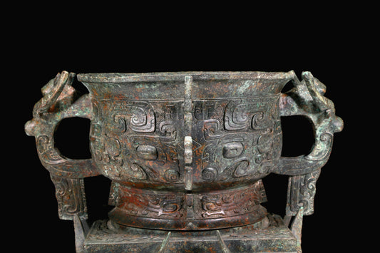 A Huge Archaic Bronze 'Animal Mask' Vase With Inscriptions