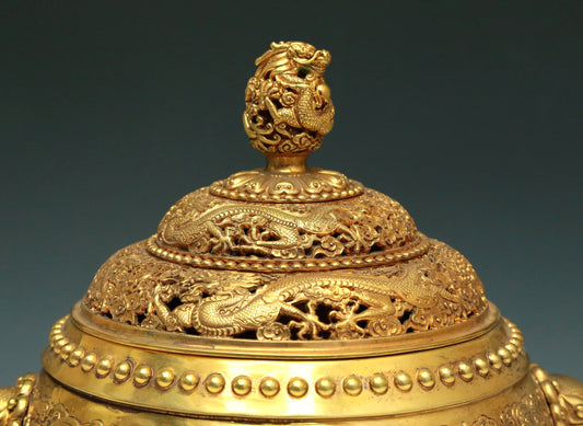 A Magnificent Gilt-Bronze 'Lion& Auspicious Cloud' Tripod Censer And Cover