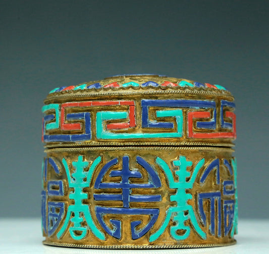 A Magnificent Cylindrical Gilt-Bronze Gem-Inlaid Box