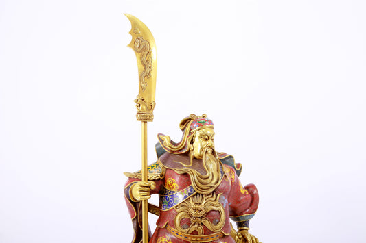 A majestic cloisonné statue of Guan Gong