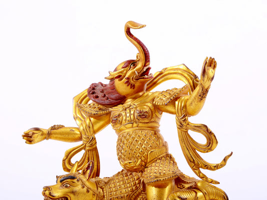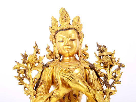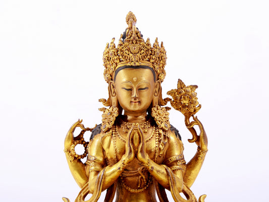 A majestic gilt bronze four-armed Guanyin statue