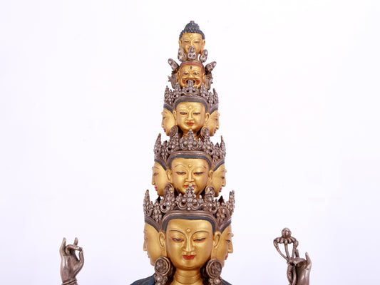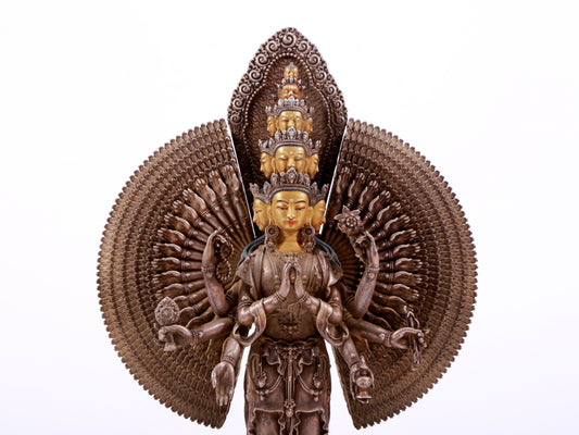 A majestic gilt bronze and silver statue of Avalokitesvara with Thousand Arms