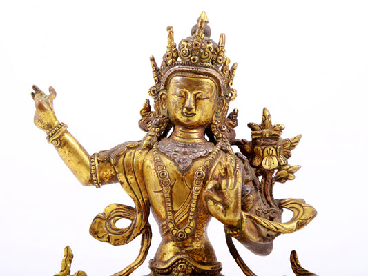 A majestic gilt bronze image of Manjushri Bodhisattva