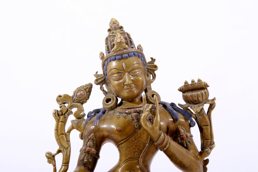 A majestic alloy copper inlaid silver statue of Tara
