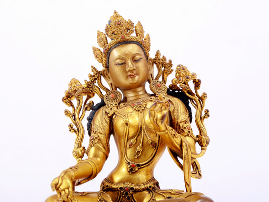 A majestic gilt bronze statue of green Tara