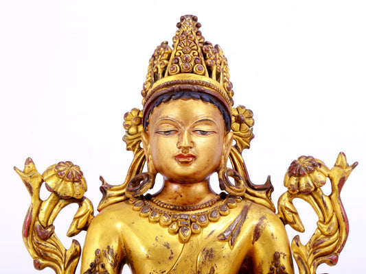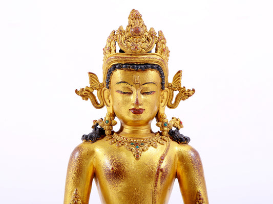 A majestic gilt bronze statue of Amitayus Buddha
