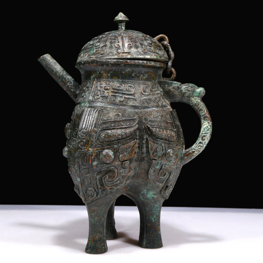 A Marvelous Bronze 'Animal Mask' Tripod Ewer With Inscriptions