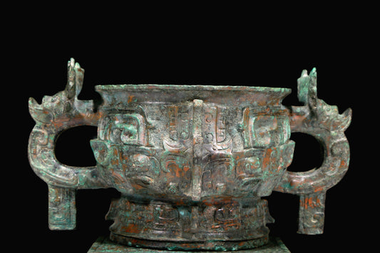 A Marvelous Bronze 'Animal Mask' Vase With Inscriptions