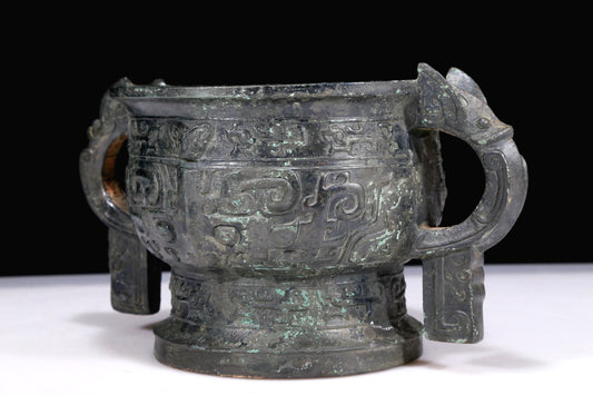 A Marvelous Bronze 'Animal Mask' Tripod Cup