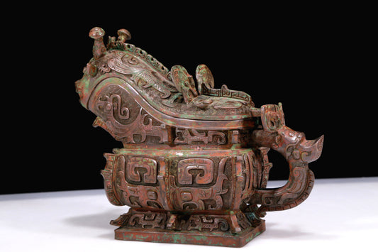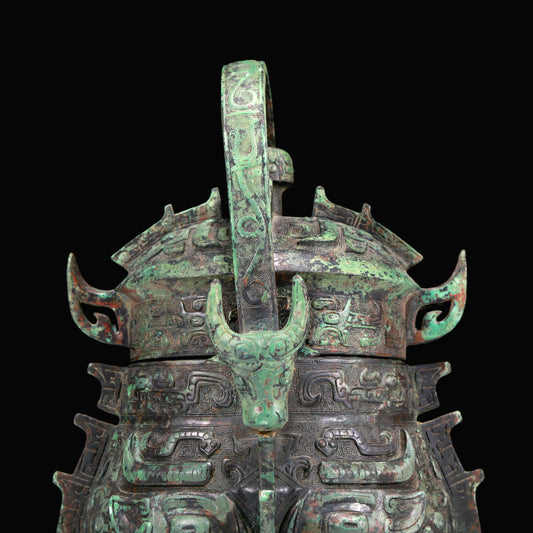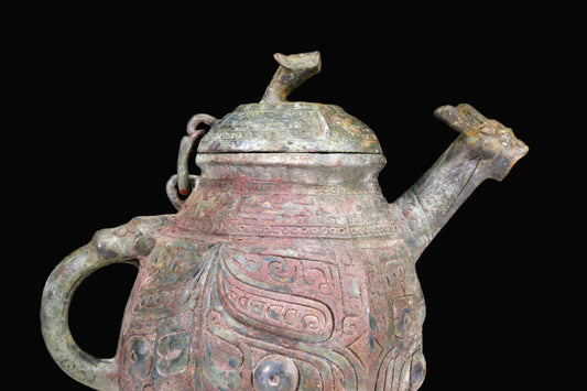 A Marvelous Bronze 'Animal Mask' Ewer And Cover With Inscriptions