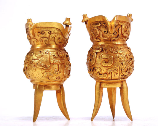 A Marvelous Pair Of Gilt-Bronze 'Dragon& Phoenix' Tripod Cups