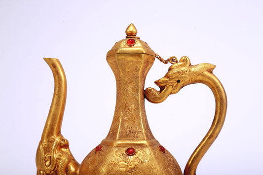 A Marvelous Gilt-Bronze Gem-Inlaid 'Bird& Flower' Ewer