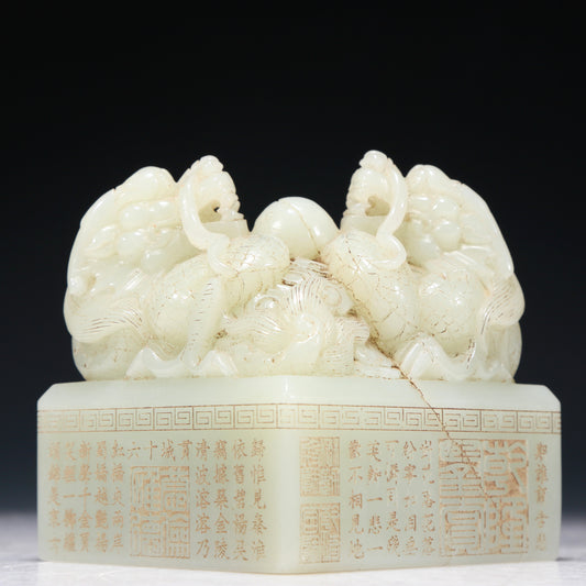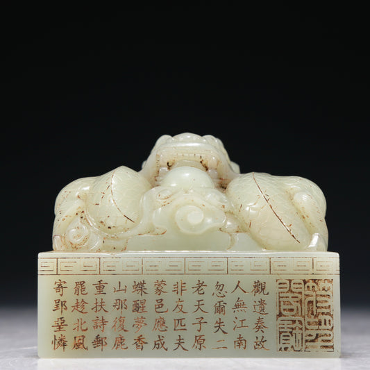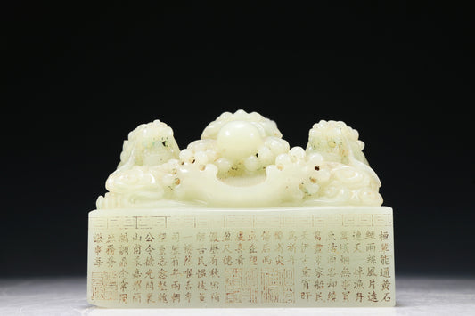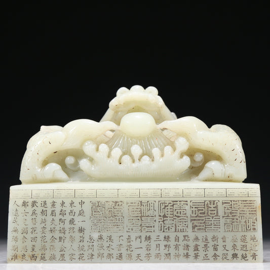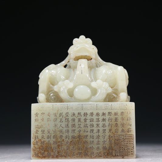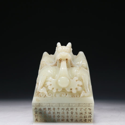 A Marvelous White Jade 'Dragon' Seal With Poem Inscriptions