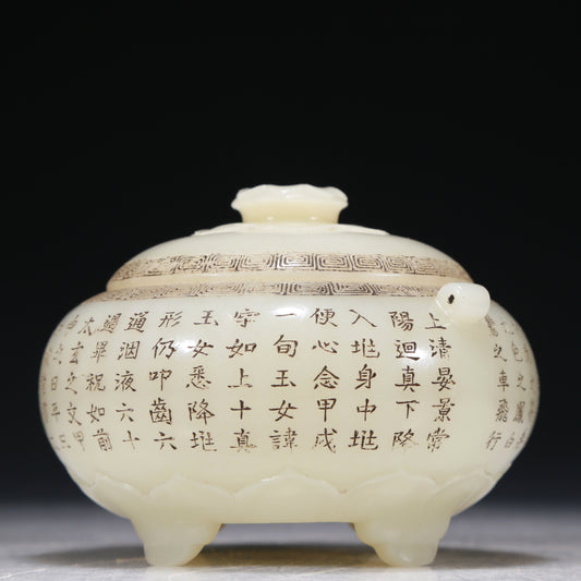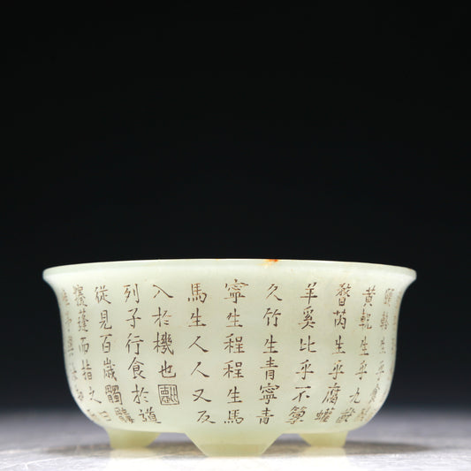 A Marvelous Imperial White Jade 'Poem' Tripod Bowl