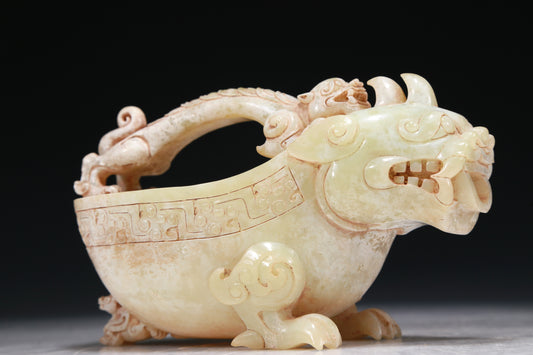 A Marvelous White Jade 'Auspicious Beast' Ewer