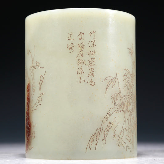 A Marvelous White Jade 'Pine, Bamboo, Plum Blossom' Brush Pot With Poem Inscriptions