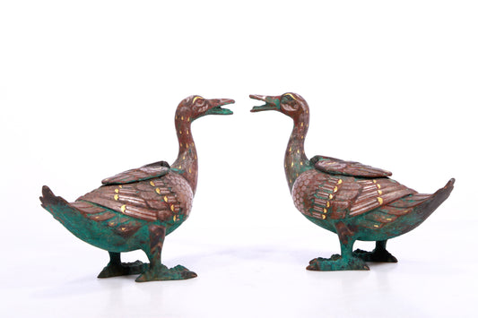 A Marvelous Pair Of Bronze Gold& Silver-Inlaid Ducks