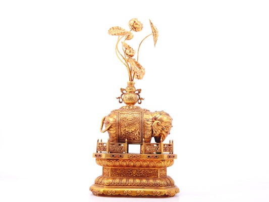 A pair of precious gilt bronze elephant ornaments