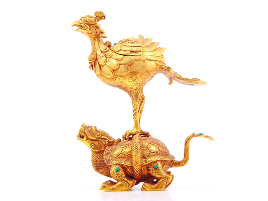 A pair of gilt bronze auspicious animal ornaments