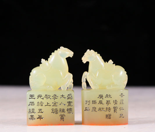 A pair of Shoushan stone horse seals, Guangxu period