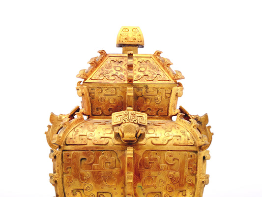 A perfect gilt bronze ewer with a lotus pattern inlaid with hundreds of treasures