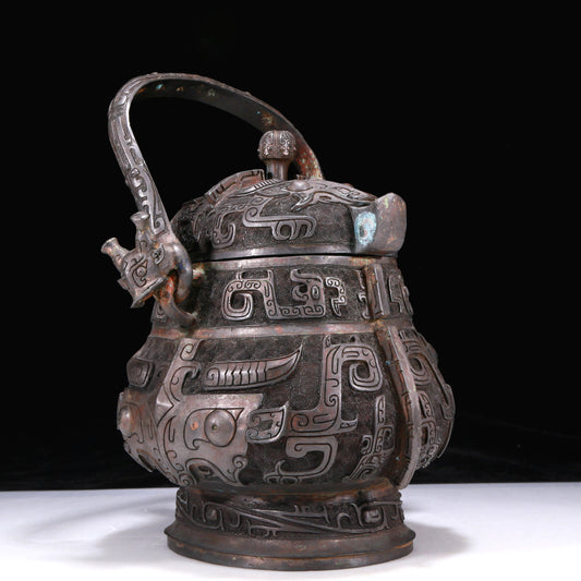 A Precious Bronze 'Animal Mask' Beast-Handled Jar With Inscriptions
