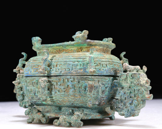 A Precious Bronze 'Animal Mask' Box With Inscriptions