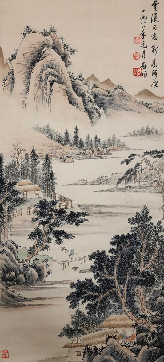 A Precious Chinese Ink Painting Hanging Scroll By Qi Gong